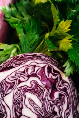 What a vibrant vegetable! Even though it is one of the healthiest vegetables around, we don’t consume enough red cabbage. It is very low in calories- red cabbage contains just 21 calories per 100g, being 90% water. It helps the body to produce red blood cells. It contains vitamin C which helps to protect our cells by acting as an antioxidant.